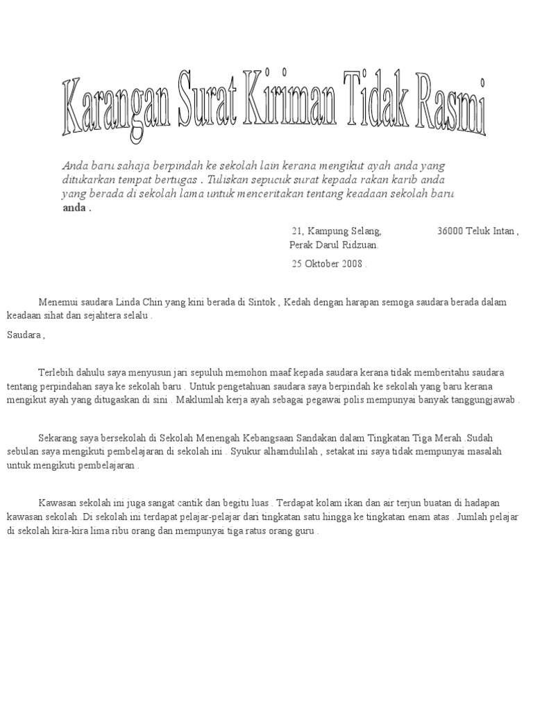 Jenis Karangan. Bagi rumah yang tidak ada tile sila la beli tikar ya. SURAT KIRIMAN TIDAK RASMI Soalan.